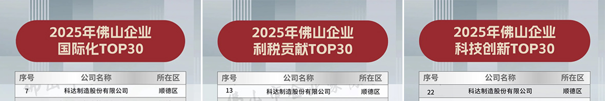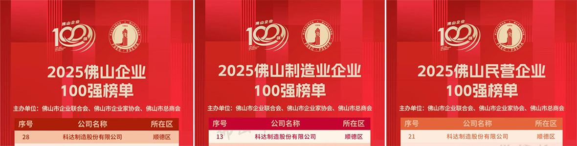 科達制造第七度入圍“佛山企業(yè)100強”榜單,排名大幅躍升,從2024年的第39位躍至第28位。同時,科達制造還上榜“制造業(yè)企業(yè)100強”、“民營企業(yè)100強”、“國際化TOP30”、“利稅貢獻TOP30”、“科技創(chuàng)新TOP30”的全部榜單。其中,在“民營企業(yè)100強”中排名第21位,“制造業(yè)企業(yè)100強”中位列第13位,排名均顯著提升,“國際化TOP30”“利稅貢獻TOP30”“科技創(chuàng)新TOP30”分別位列第7、13、22名。